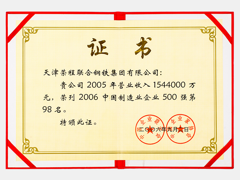 2005年營業收入1544000萬元,榮列2006中國制造業企業500強第98名