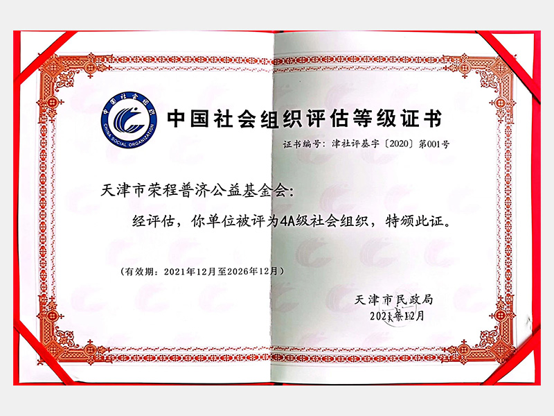 中國(guó)社會(huì)組織評(píng)估等級(jí)證書(shū)—AAAA級(jí)社會(huì)組織
